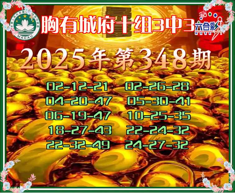 335期: 🥼『胸有城府』 🥼十组3中3🥼